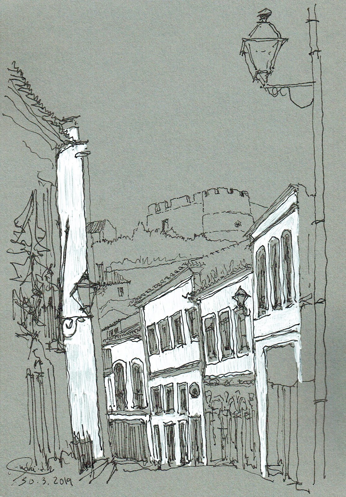 Quando tinhamos decidido ir embora, deparei-me com este enquadramento pitoresco, que não resisti a passar para o papel.