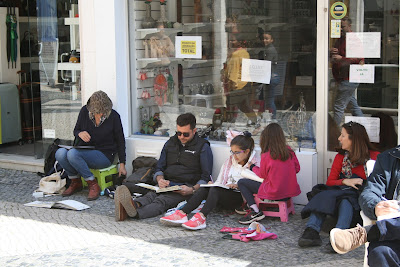 No 2º dia do encontro, levantámo-nos cedo e rumámos até Póvoa e Meadas, aproveitando a boleia do Filipe e do seu pai, o Sr. Vítor. Depois de um breve reconhecimento do lugar (pitoresco e simpático), optámos por começar no Largo de Santa Margarida, onde se encontra a Igreja de Santa Margarida. Enquanto desenhamos, lá começam os locais a passar de um lado para o outro só para verem o que os ETs estavam a fazer - a desenhar.