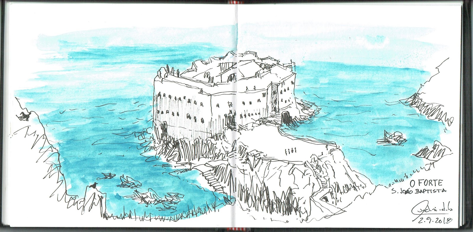 Ao descermos até ao Forte S. João Baptista, somos deparados com uma paisagem digna de postal. A forma do Forte, a sua cor e textura, a contrastar com a cor do mar, deixam-nos sem fôlego.